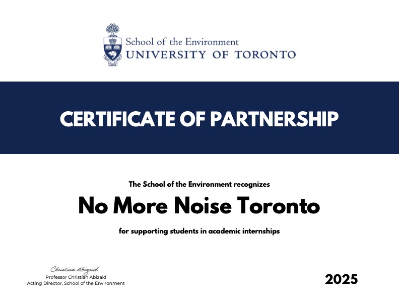 We are building our list of many supporters. To add your resident association, please send an email with logo to hello@nomorenoise.ca.